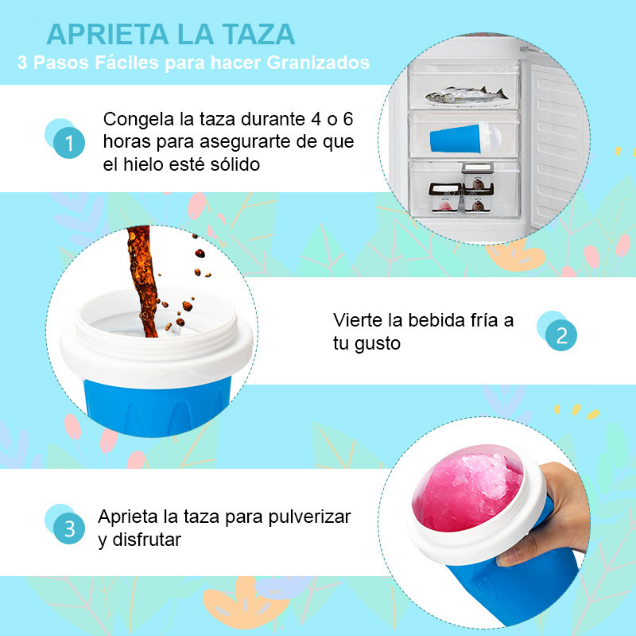 Vaso para hacer granizados, pon tu bebida favorita y simplemente aprietalo constantemente hasta lograr la textura deseada. Incluye: